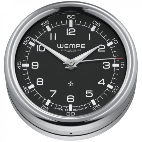 El gran reloj de cuarzo WEMPE de 100 mm de la serie PILOT III impresiona por su atractivo moderno y sus medidas precisas. El diseño, con la esfera del reloj negro y los índices blancos de LumiNova, está dirigido a jóvenes propietarios de yates que no consideran como actualizados los instrumentos marinos tradicionales. La atractiva apariencia del reloj de cuarzo PILOT II está redondeada por la carcasa de acero inoxidable.